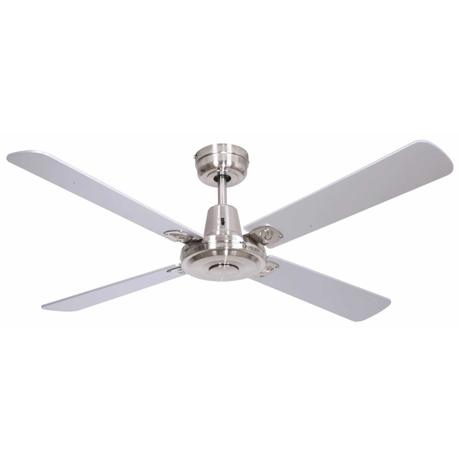 This brushed chrome 304 stainless steel ceiling fan is a great addition to any room. Includes summer/winter energy saving setting and 3 speed wall controller.