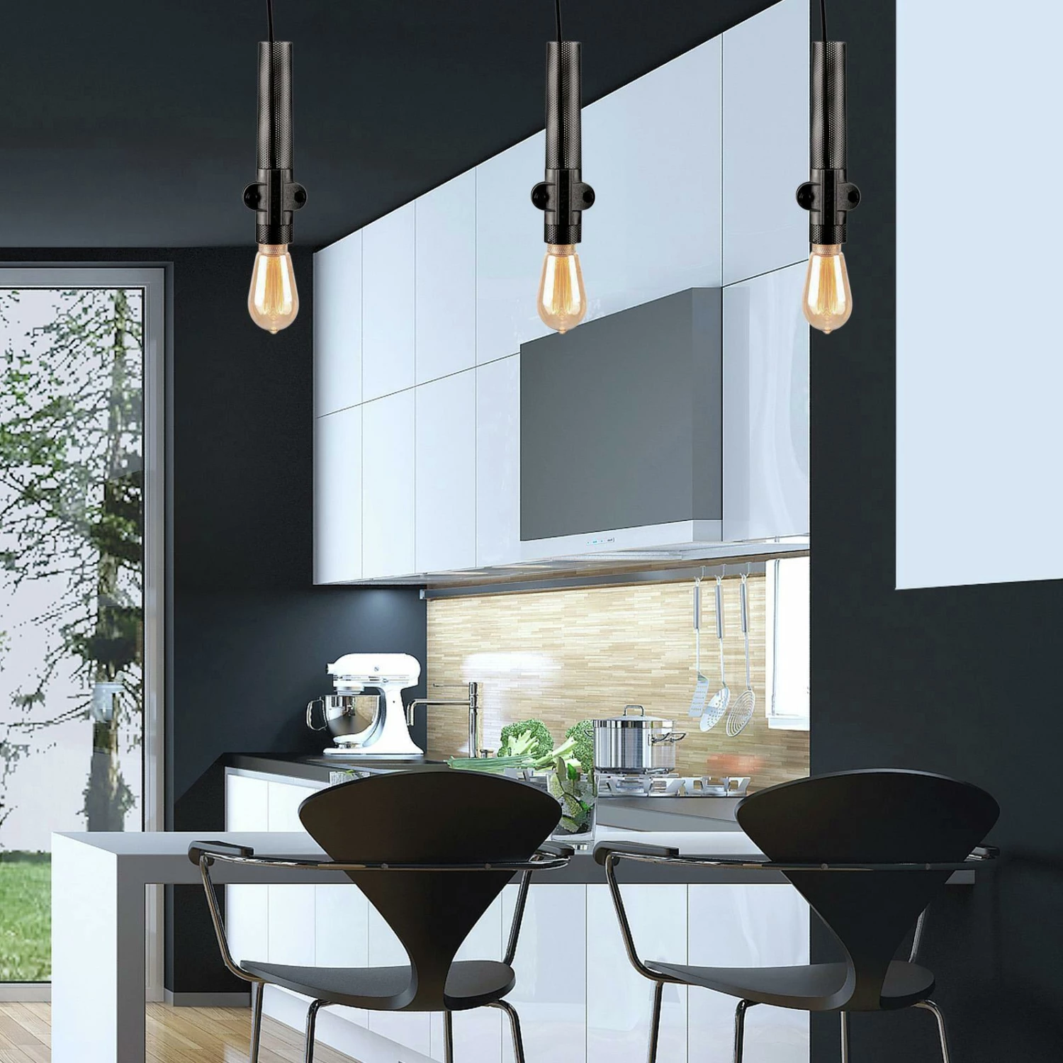 An industrial clamp pendant that fits perfectly over a kitchen bench, or clustered together at different heights. Available in three more colours.