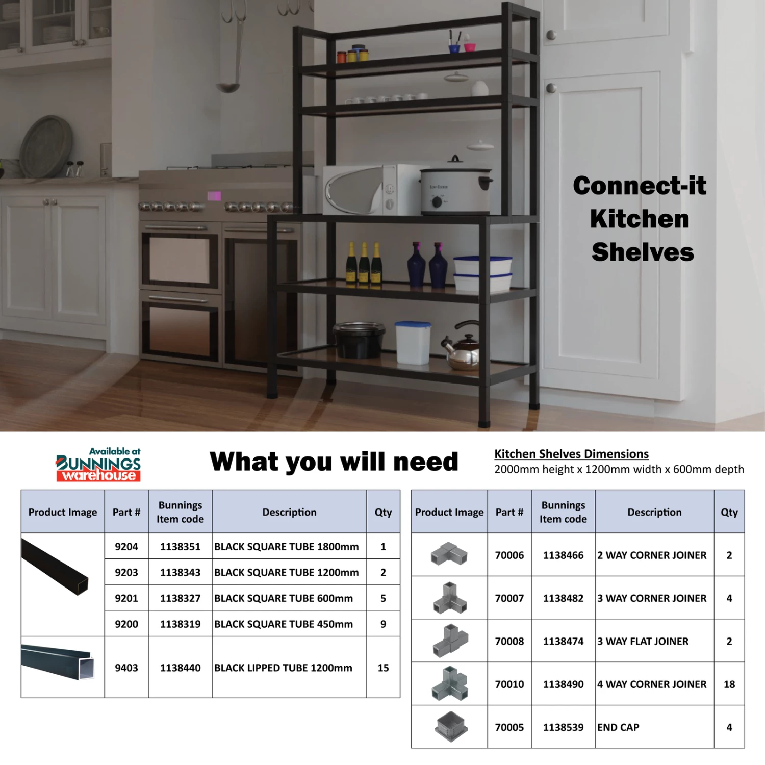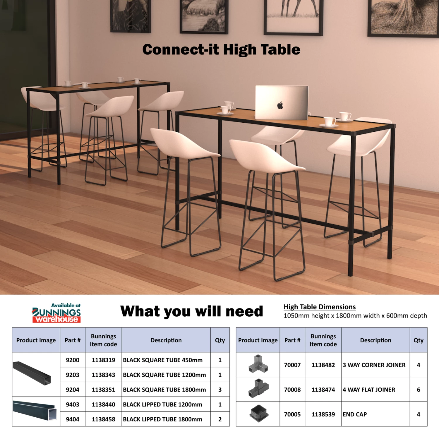 Metal Mate black anodised aluminium square tube is 25.4mm x 1.2mm thick and available in five convenient pre-cut lengths. The Metal Mate system is easy to work with, simply tap the pieces together with the range of impact resistant corner joiners, creating right angled joins. Make coffee tables, storage racks, shelving units, trolleys, display fixtures, tables, benches and more.