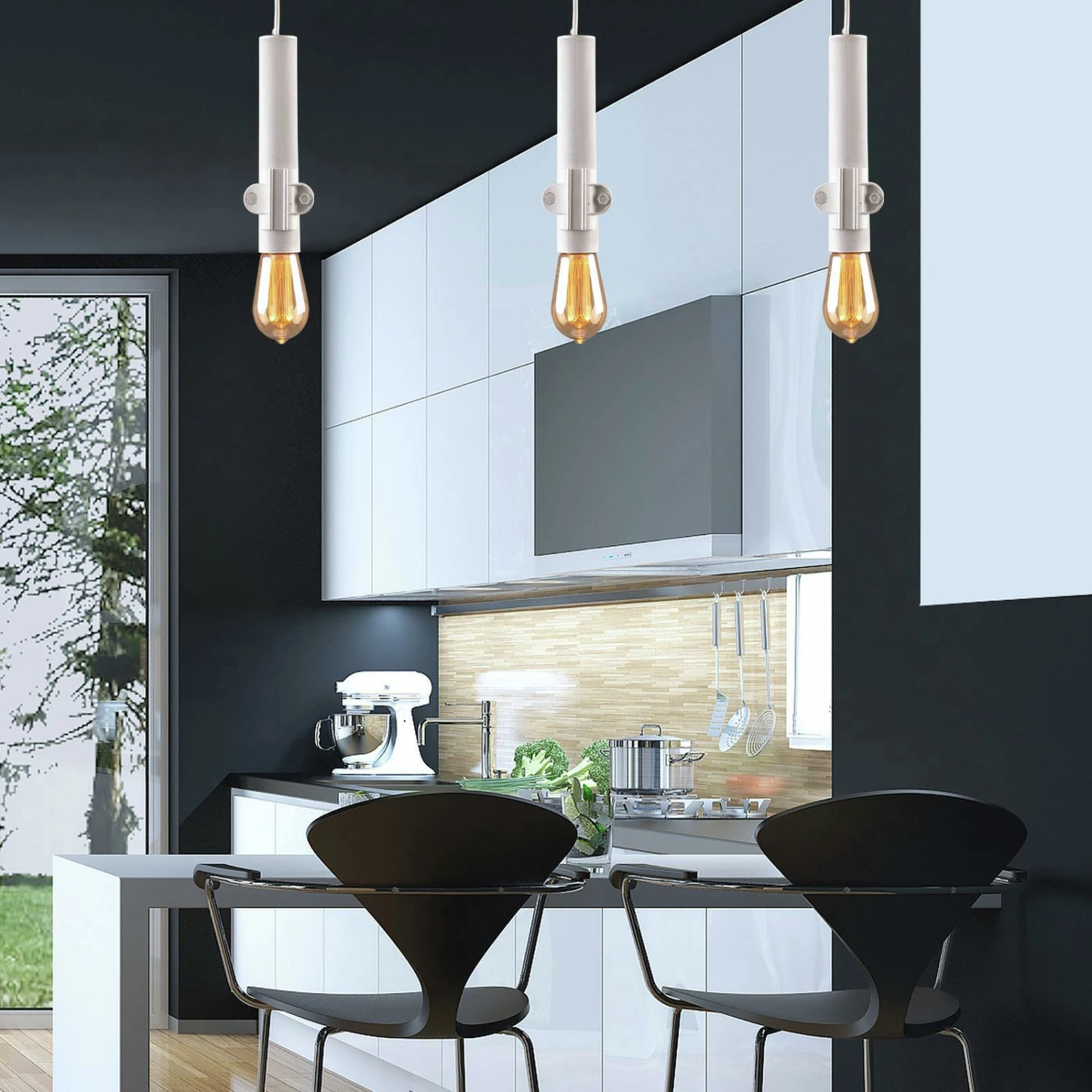 An industrial clamp pendant that fits perfectly over a kitchen bench, or clustered together at different heights. Available in three more colours.