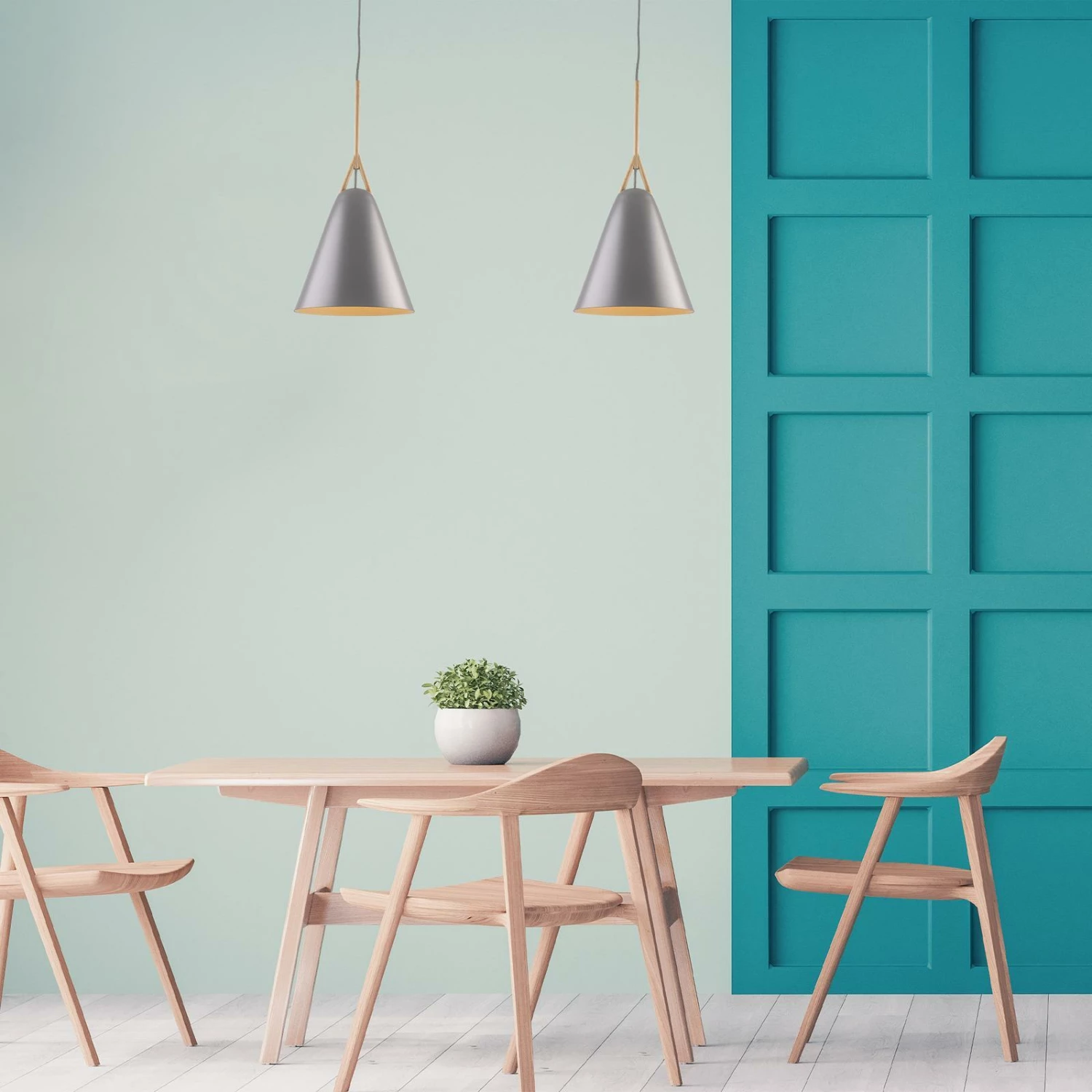 Scandinavian style inspired Byron is a matt grey, wood-look top pendant, which can tie beautifully into a contemporary kitchen setting.